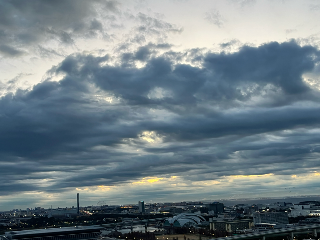 In Japan, people look forward to seeing the first sunrise of the year. This is my photo of when I looked out my window this year, all I could see were clouds—thick and heavy, with just streaks of sunlight breaking through. Well, at least there were signs of sun behind the clouds. I still had hope.